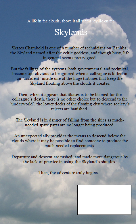 Skates Chambold is one of a number of technicians on Banhba, the Skyland named after the celtic goddess, and though busy, life in general seems pretty good.